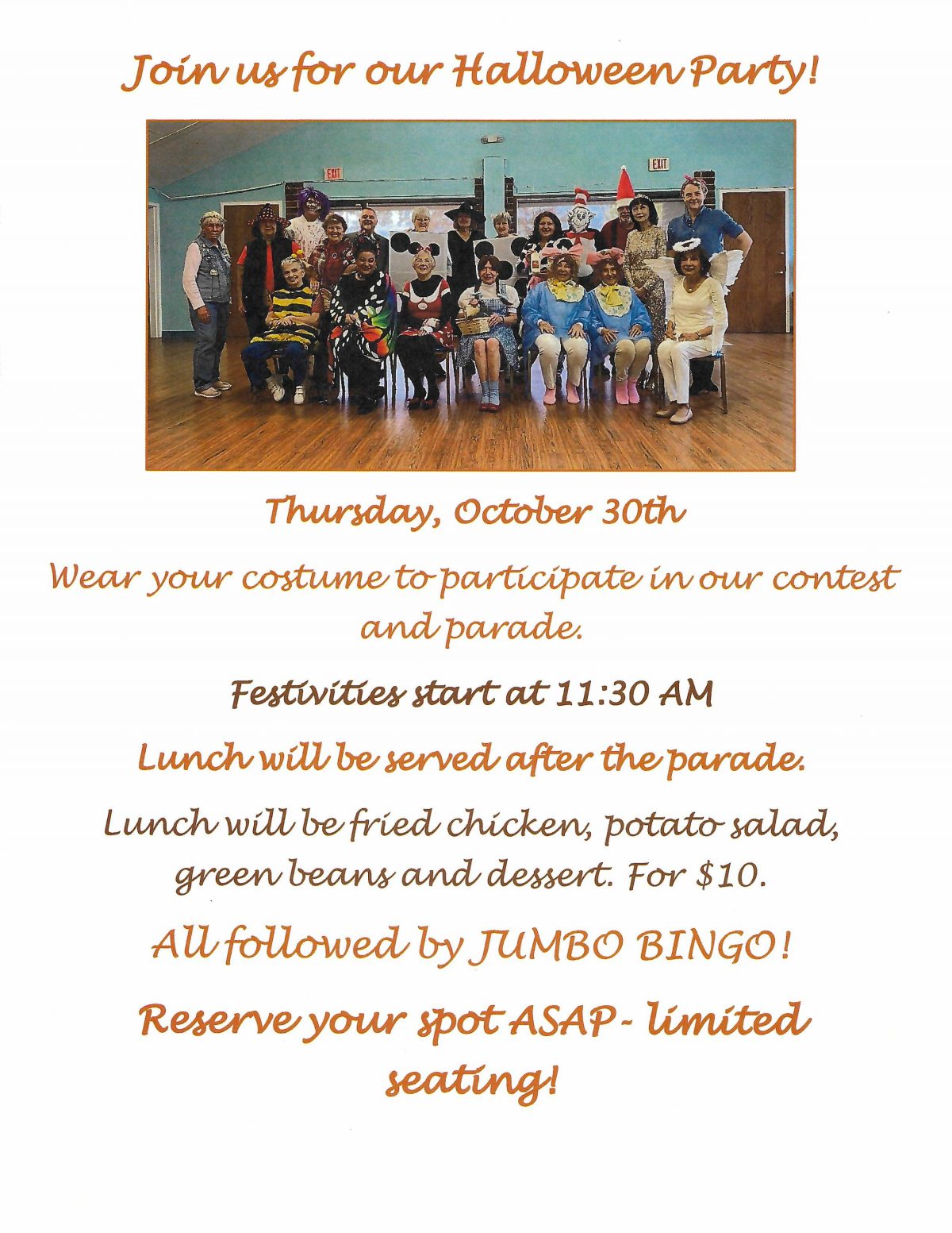 Join us for BINGO every Tuesday and Thursday at 12:30 PM. Cash Prizes! Call the Center to sign up